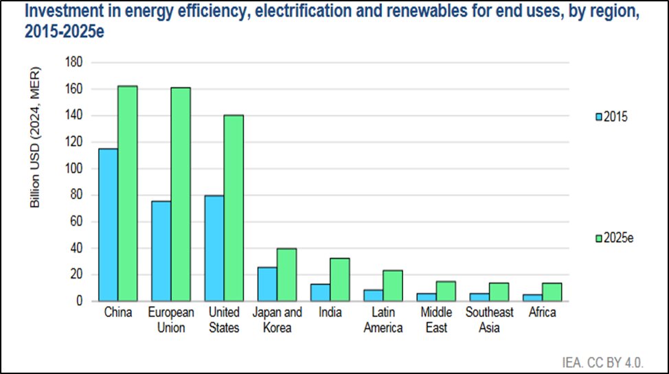 افزایش قابل توجه سرمایهگذاری کشورهایی نظیر چین، ژاپن، اتحادیه اروپا، هند، آمریکا، جنوبشرق آسیا، خاورمیانه و آفریقا در حوزه بهرهوری و توسعه انرژیهای تجدیدپذیر طی سالهای 2015 تا 2025، نشاندهنده اجماع جهانی بر ضرورت گذار به نظام انرژی پایدار است. این روند بهروشنی تاکید میکند که آینده انرژی جهان، برپایه منابع پاک و تجدیدپذیر شکل خواهد گرفت.
