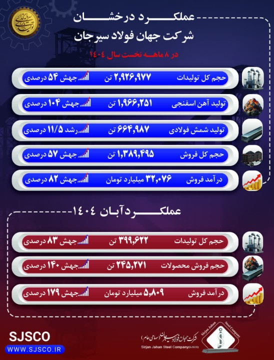 درآمد فروش آبانماه با 5 هزار و 809 میلیارد تومان، رشد 179 درصدی را نسبت به مدت مشابه سال گذشته رقم زده است. عملکرد شرکت جهان فولاد سیرجان در سال سرمایه گذاری برای تولید بیانگر افزایش همزمان تولید، بهبود بهرهوری و تقویت موقعیت شرکت در بازار است.