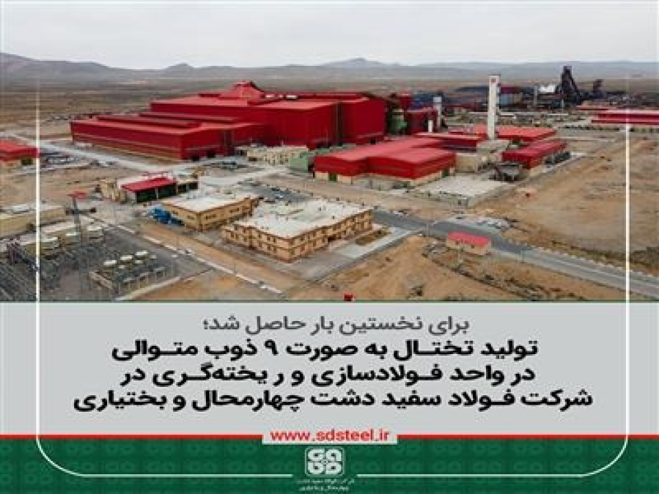طهمورث جوانبخت، با اعلام اين خبر، اظهار کرد: در ادامه دســتاوردهاي اخير شـرکت فـولاد سفيددشـت چهارمحال وبختيـاري، روز سه شـنبه چهـارم آذرمـاه کارکنـان واحد فولادسـازي و ريخته گري اين شـرکت موفق شـدند عمليات توليد تختـال را به صـورت 9 ذوب متوالـي بـا موفقيـت بـه انجام رسـانند. وي افزود: پس از تحقق توليد تختال در قالب سکوئنس هاي متوالي در ماه هاي گذشته، همکاران پرتلاش ما در واحد فولادسازي و ريخته گري توانستند با رفع موانع و اجراي بهينه سازي هاي لازم، به اين رکورد ارزشمند دست يابند. مديرعامل شرکت فولاد سفيددشت چهارمحال و بختياري عنوان کرد: اين موفقيت نتيجه تلاش شبانه روزي کارکنان عملياتي و ستادي، پيمانکاران و تأمين کنندگان است که بار ديگر توان فني و مديريتي مجموعه را به نمايش گذاشت.